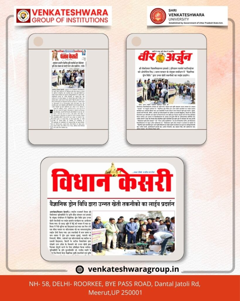 Shri Venkateshwara University, in collaboration with IFFCO (Indian Farmers Fertilizer Co. Ltd) displayed advanced farming techniques using Vigyanic Drone Vidhi.