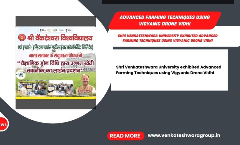 Shri Venkateshwara University, in collaboration with IFFCO (Indian Farmers Fertilizer Co. Ltd) displayed advanced farming techniques using Vigyanic Drone Vidhi.