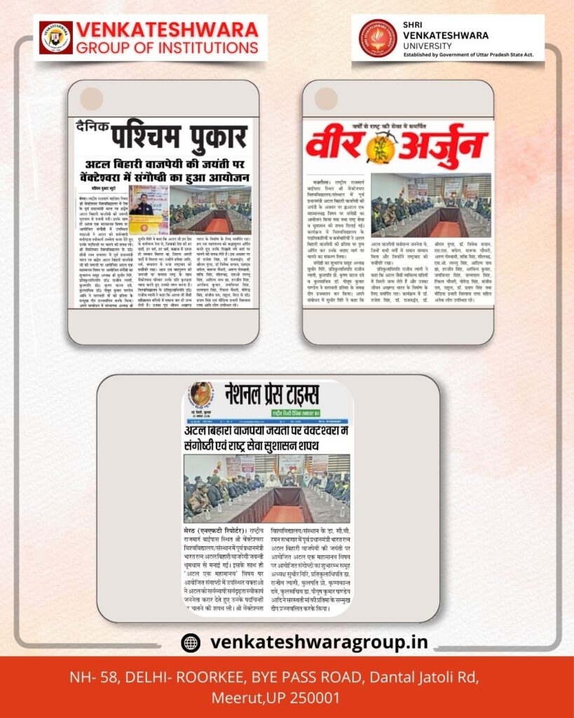 Shri Venkateshwara University/Institute hosted a seminar and a national service oath for good governance on Bharat Ratna Atal Bihari Vajpayee’s birth anniversary.