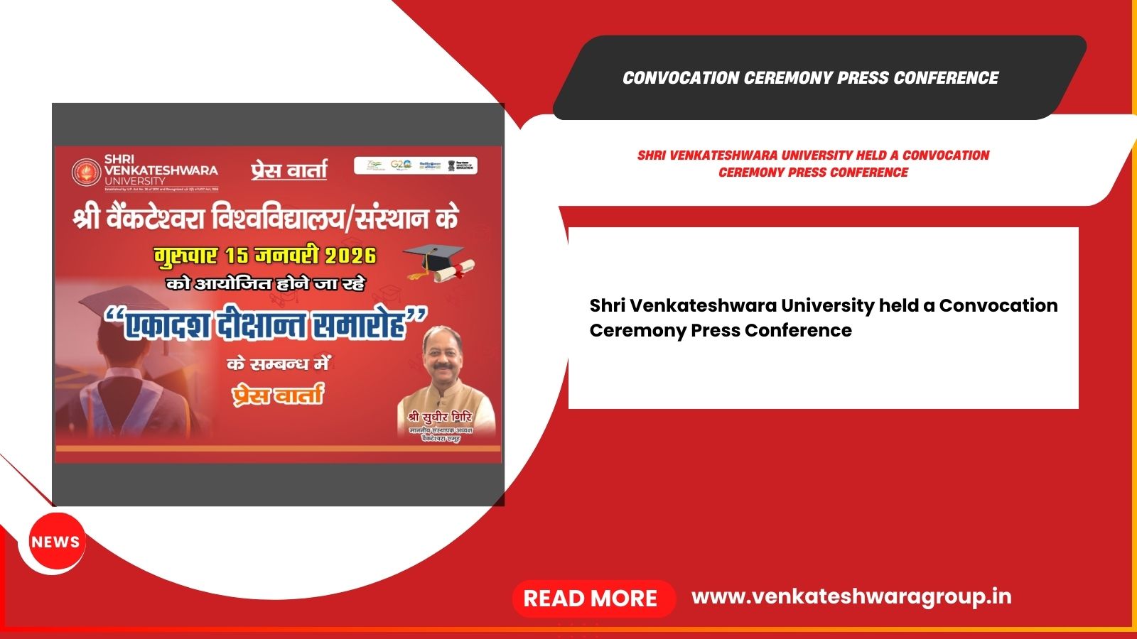 Shri Venkateshwara University(SVU) will conduct its 11th convocation ceremony on January 15th, 2026. SVU held a Convocation Ceremony press conference to inform about the high-profile dignitaries and students who will take part in the Convocation.