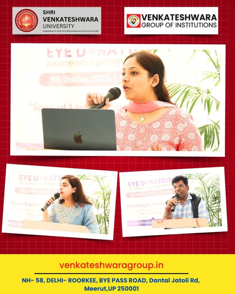 VIMS Multispecialty Hospital, part of Shri Venkateshwara University, held an Eye Donation Awareness Program 2025. They also hosted a seminar called “Love Your Eyes” to celebrate World Eye Day on October 9, 2025.