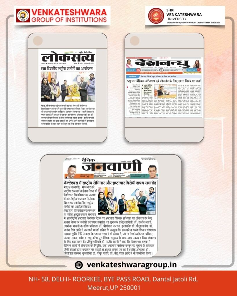 Shri Venkateshwara University/Institute hosted a seminar titled “Corruption is a Global Curse and a Threat to Democracy” for International Anti-Corruption Day 2025.