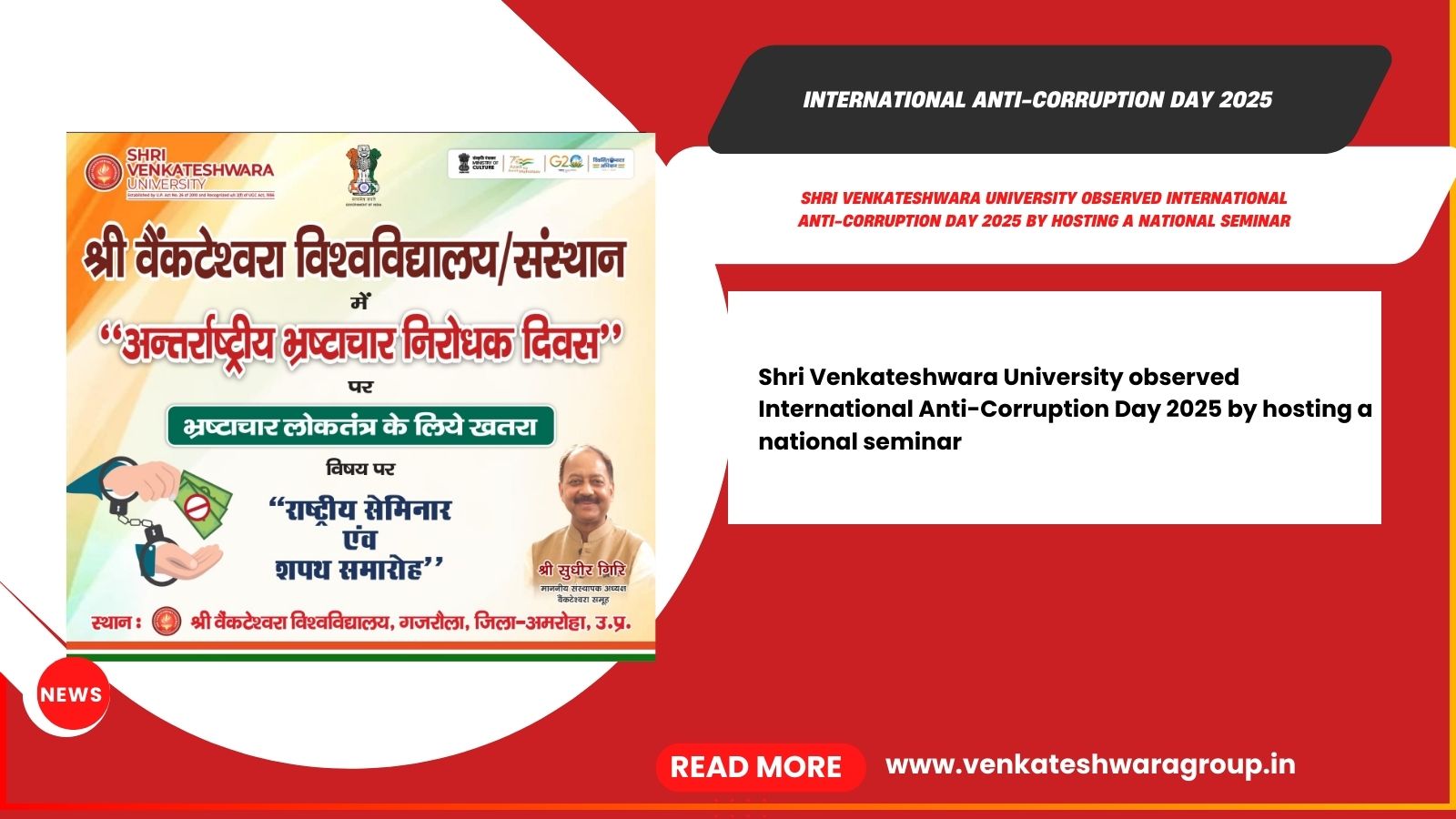 Shri Venkateshwara University/Institute hosted a seminar titled “Corruption is a Global Curse and a Threat to Democracy” for International Anti-Corruption Day 2025.