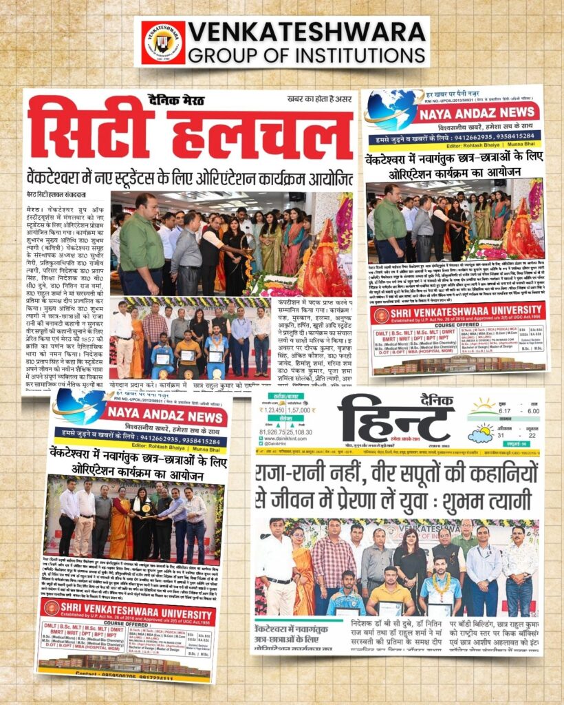 Venkateshwara Group of Institutions in Meerut hosted an orientation function 2025 for the newly admitted students.