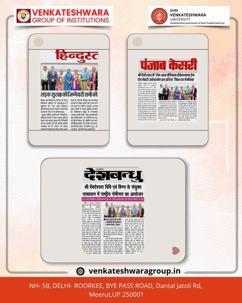 Shri Venkateshwara University and Venkateshwara Institute of Medical Sciences (VIMS) hosted a national seminar on the Role of Medical Professionals in Road Safety Awareness in India.