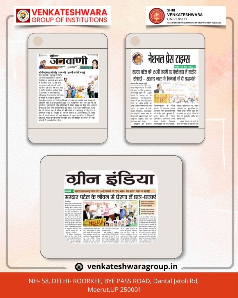 Shri Venkateshwara University/Institute celebrated Iron Man Sardar Patel’s birth anniversary by hosting a seminar on Ek Bharat- Shrestha Bharat.